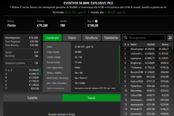 Risultati MTT 17 Gennaio: l’Explosive PKO lo vince ‘Killuifuplay1’